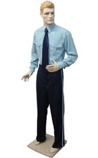 con cinta a los costados y corbata.